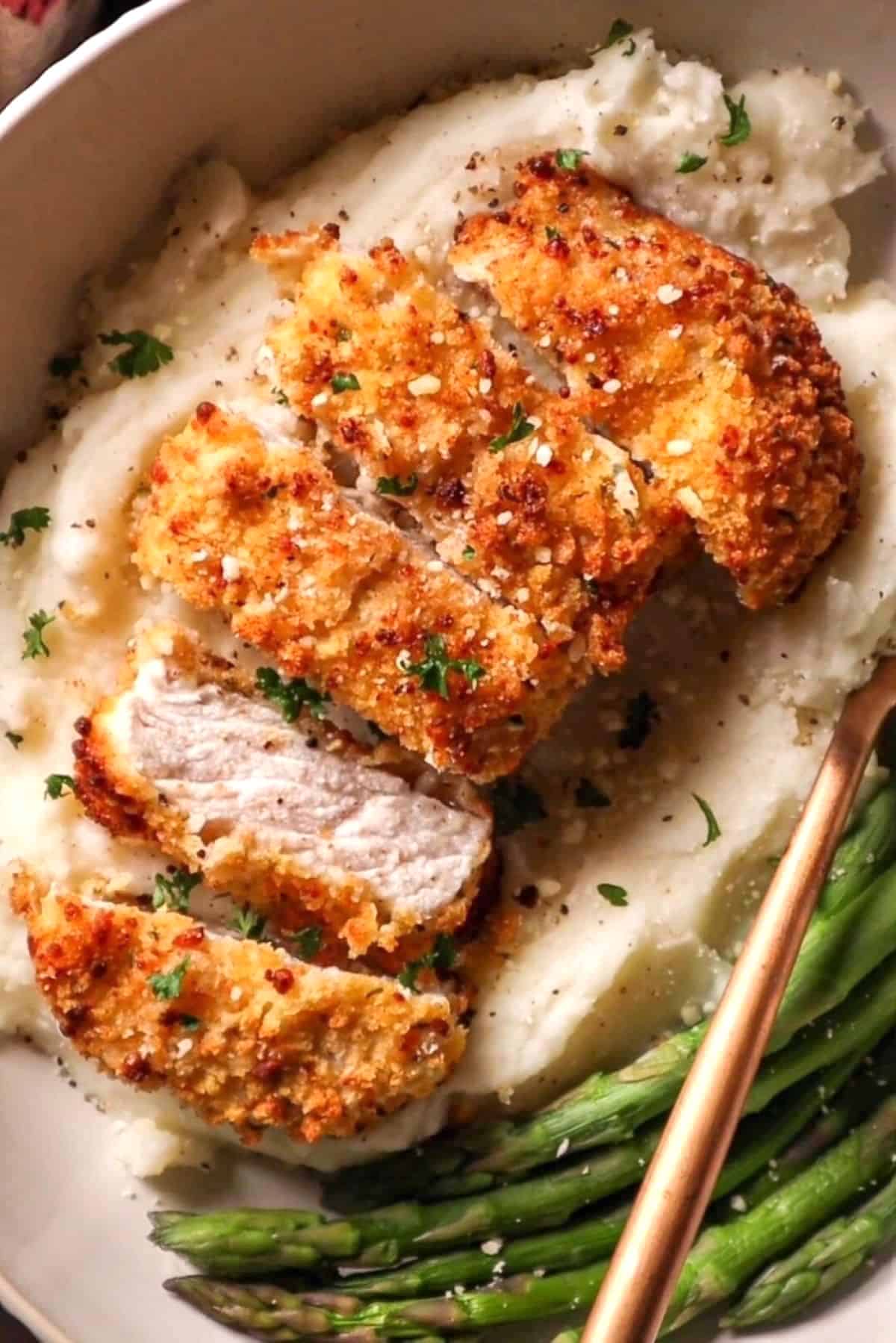 - Parmesan Cheese: Added to the breadcrumbs to form the breading. It adds flavor, but also helps the crust stay together.